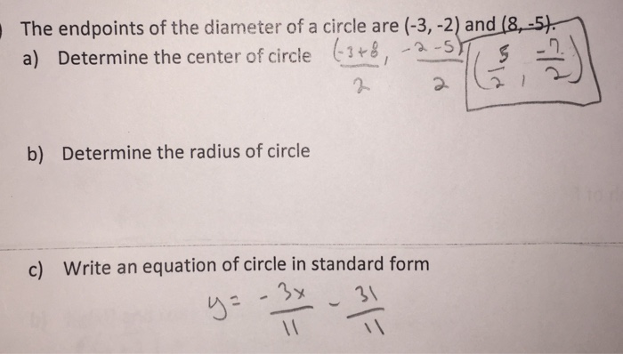 The Endpoints Of The Diameter Of A Circle Write An Equation
