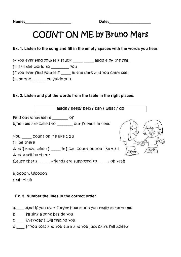 Count On Me Lyrics Esl Worksheet By Nakoabdullah